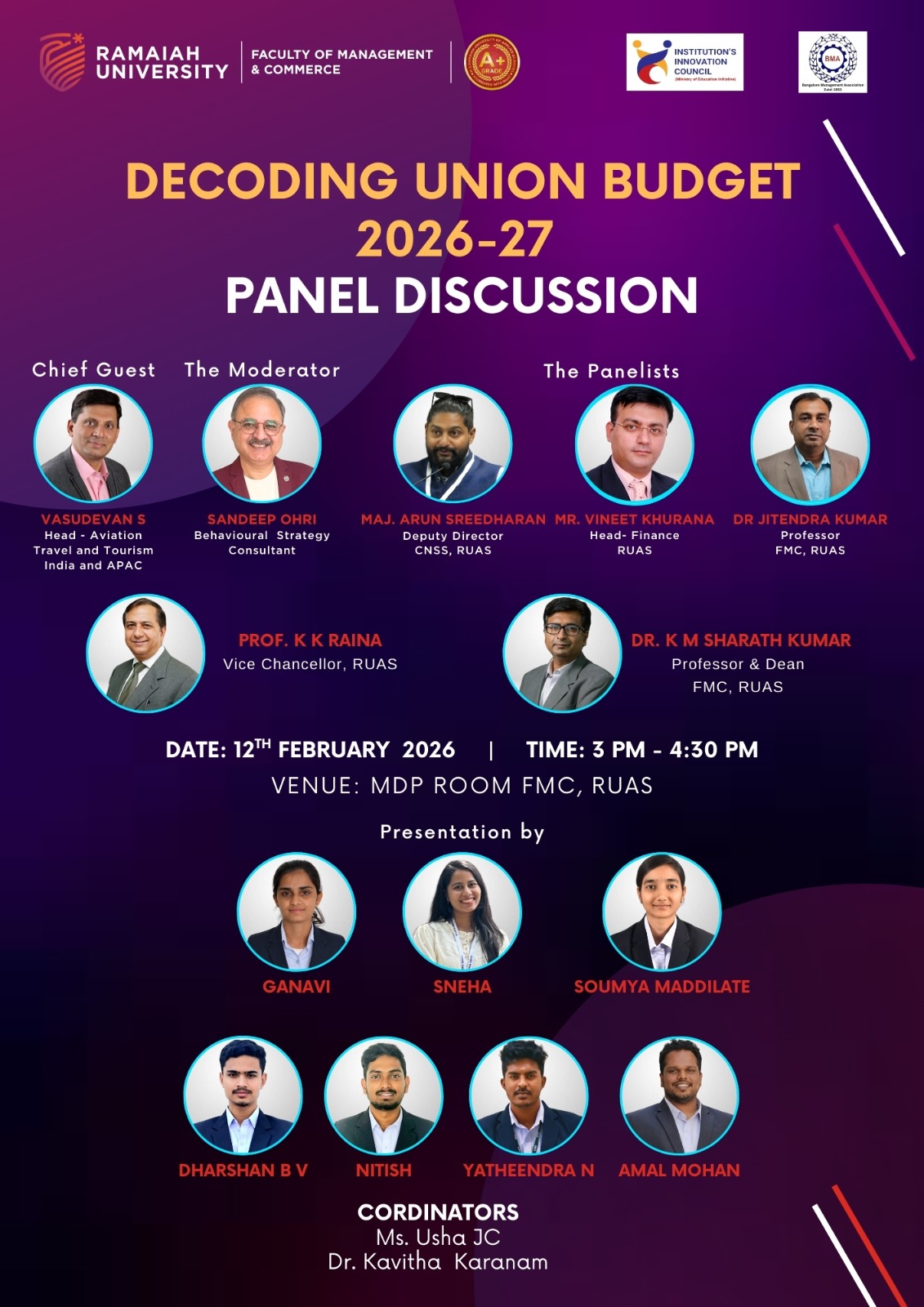 The Faculty of Management & Commerce (FMC) at Ramaiah University of Applied Sciences (RUAS) cordially invites you to a panel discussion on "Decoding Union Budget 2026–27."
